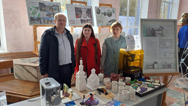 Кафедра архітектури і містобудування представила роботи студентів та проєктні рішення у сфері архітектурного проєктування, зокрема вироби художнього-прикладного мистецтва (картини і студентські роботи, виготовлені на 3D-принтері мініатюри замків і палаців) та сам 3D-принтер.