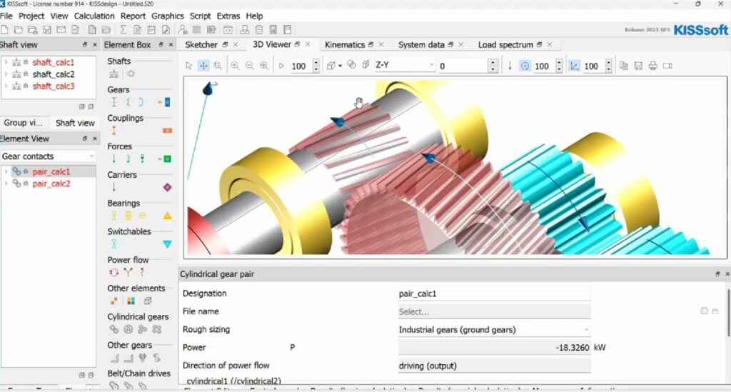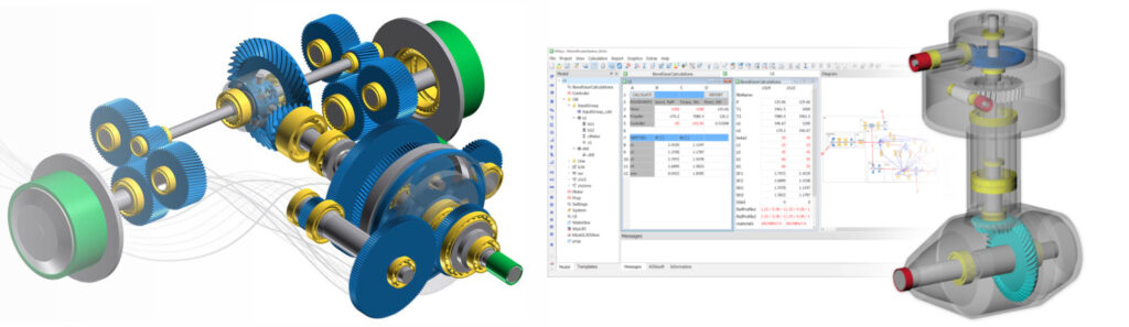 1) Зубчасті передачі. Проводиться розрахунок зубчастих передач всіх основних типів, зокрема циліндричних, конічних, черв’ячних, гіпоїдних та ін. Міцність розраховується на основі стандартів ISO, DIN, AGMA, VDI тощо, в т.ч. таких, які є чинними в Україні. Додатково пропонується величезна кількість рішень для визначення розмірів та оптимізації, а також реалізовано методи оцінки, що навіть виходять за рамки стандартів.