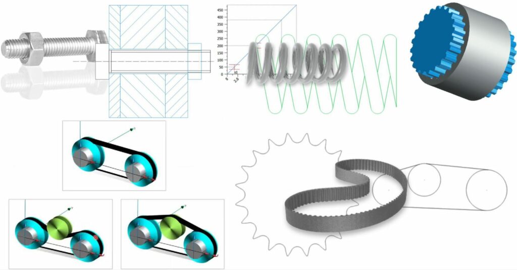 5) Розрахунок пружин. Передбачено виконання перевірочних розрахунків для найбільш поширених типів пружин (циліндричні, конічні, тарільчасті тощо), доступна також база даних з матеріалами пружин, різними діаметрами дроту та стандартами допусків.