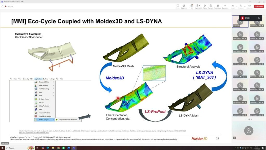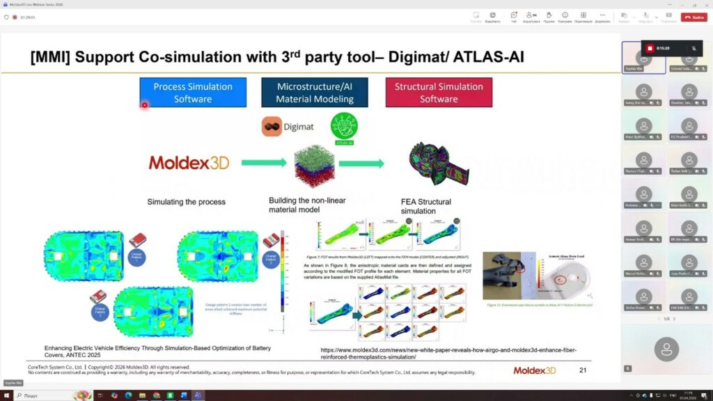 Захід відбувся 25 березня 2026 року і зібрав провідних фахівців з Європи та Азіатсько-Тихоокеанського регіону. Вебінар був присвячений демонстрації новітніх можливостей програмного комплексу для комп’ютерної симуляції процесів лиття пластмас під тиском, що є ключовим інструментом сучасного машинобудування та виробництва полімерних виробів.